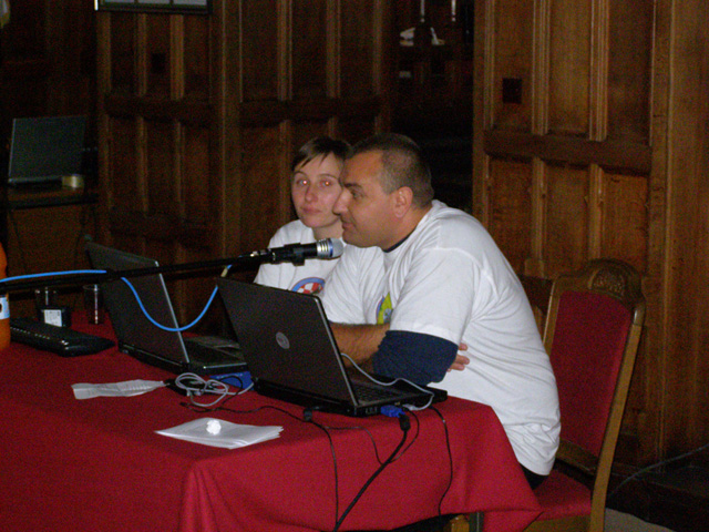 Stjepan Zvonarić, jedan od najpoznatijih hrvatskih ufologa (ako ne i najpoznatiji). Izložba se sastojala od brojnih materijala: slika, iskopina, minerala, rekonstrukcija, maketa, tekstova, itd. Već od otvorenja počeli su pristizati prvi posjetitelji, a prva "gužva" stvorila se malo poslije 12 sati. Negdje oko 13 sati pojavili su se ljudi iz HRT-a koji su snimili kratku reportažu, a koja je kasnije prikazana u emisiji "Dobro jutro Hrvatska". Oko 14 sati posjetitelji su se okupili u velikoj dvorani dvorca, a pozdravnu riječ u ime organizatora uputio im je Marko Jurinjak, predsjednik Kluba mladih, u kojoj je kratko progovorio o ideji konvencije te ju proglasio i službeno otvorenom. Nakon uvodne riječi uslijedilo je prvo predavanje o svijetu Star Treka, odnosno o medicini u Star Treku, koje je priredila gđica Suzana Gračner, članica udruge "U.S.S. Croatia" iz Zagreba. U prvom dijelu predavanja gđica Gračner prikazala je usporedbu medicine Star Treka i današnje medicine u kojoj je ukazala na to da su neke stvari koje se mogu vidjeti u svijetu Star Treka već stvarnost, a ne samo daleka zamišljena budućnost. U drugom dijelu predavanja gđica Gračner predstavila je neke od moralnih, etičkih i bioetičkih problema koji se mogu susresti u svijetu Star Treka, a koji su danas, u stvarnom svijetu, vrlo aktualni i izazivaju brojne diskusije - kloniranje, eutanazija, jednakost svih pred zdravstvenim sustavom, pobačaj, itd. Ove teme i na konvenciji su izazvale brojne rasprave i razgovore i potakle na razmišljanje, što je bila i želja predavača. Nakon predavanja o medicini u Star Treku uslijedila je kratka pauza za vrijeme koje su se posjetitelji mogli okrijepiti uz grickalice i piće, kao i probati Romulansko pivo te klingonsko "krvavo vino" (Bloodwine), pripremljeno po posebnom receptu, koje je, BTW, vrlo brzo nestalo... Poslije pauze na red je došlo drugo predavanje koje je trebao održati prof. Goran Hajnal na temu " Masa, prostor i vrijeme". Međutim, par dana prije konvencije prof. Hajnal je otkazao predavanje zbog nemogućnosti dolaska, te je umjesto njegovog predavanja održano predavanje na temu "Umjetna inteligencija" koju su pripremili Katarina Doša i Marko Jurinjak, članovi Kluba mladih Donji Miholjac. U predavanju se govorilo o vrstama umjetne inteligencije, strukturi
