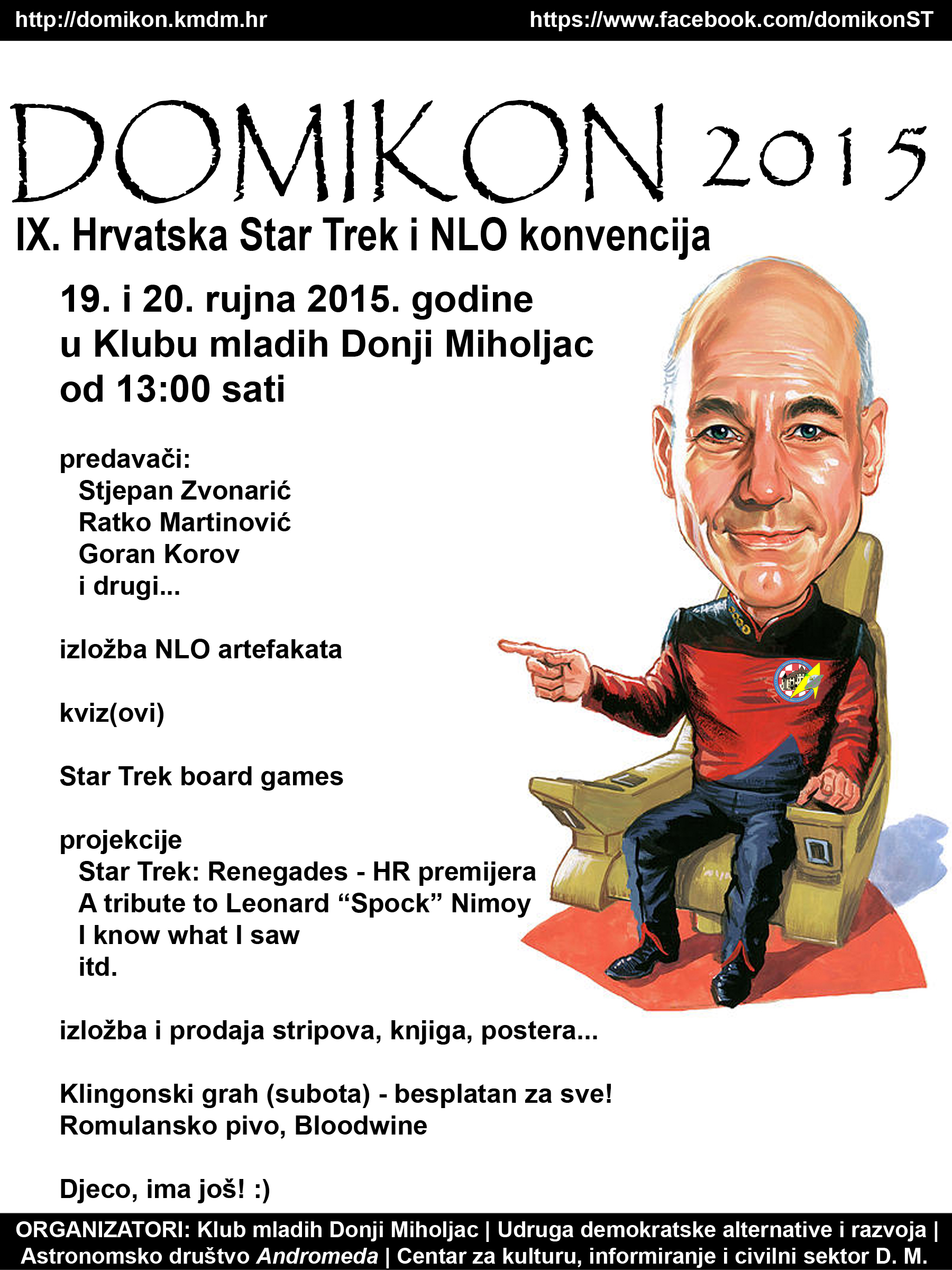 Deveta po redu Hrvatska Star Trek i NLO konvencija - Domikon 2015 - održat će se 19. i 20. rujna 2015. godine, na staroj lokaciji - u prostorijama Kluba mladih Donji Miholjac.